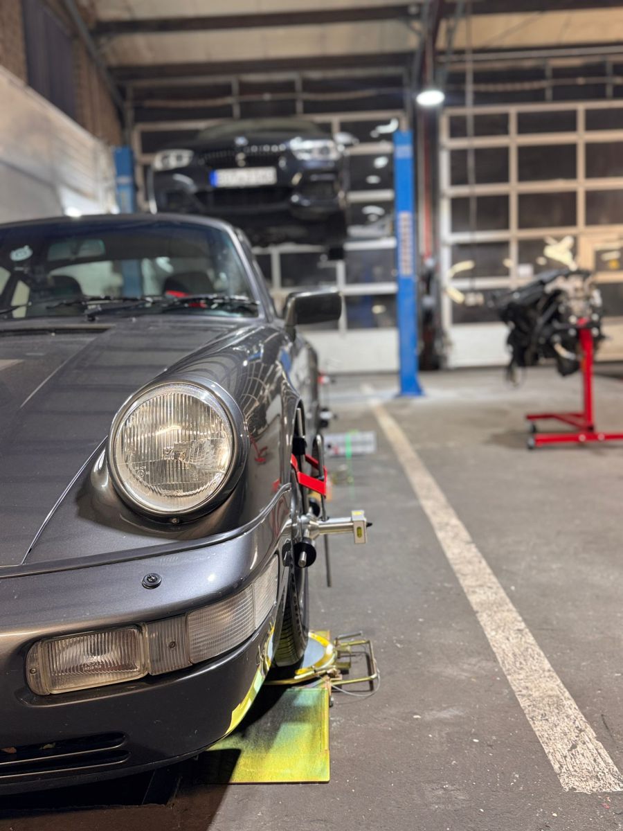 Nun ist das Schätzchen auch bei Wartung und Instandhaltung ganz in der Familie. Beim Sohnemann in Schermbeck erfolgt von November 2025 an alles rund um den 964er. In seiner Werkstatt erhält er auch immer einen Sonderplatz zum Parken.